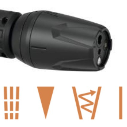 У комплект поставки цієї мінімийки входить комбінована насадка 4-в-1, яка дає змогу працювати з різними чутливими поверхнями і типами забруднень.