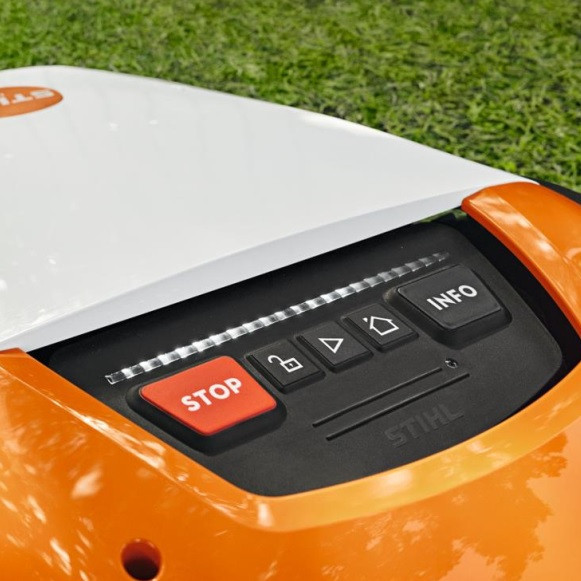 Панель управління забезпечує просте, зручне та інтуїтивно зрозуміле керування роботом. Панель має кілька основних кнопок, за допомогою яких можна виконати всі необхідні налаштування в зоні косіння. Більш детальні налаштування робляться в мобільному додатку MY iMOW®.